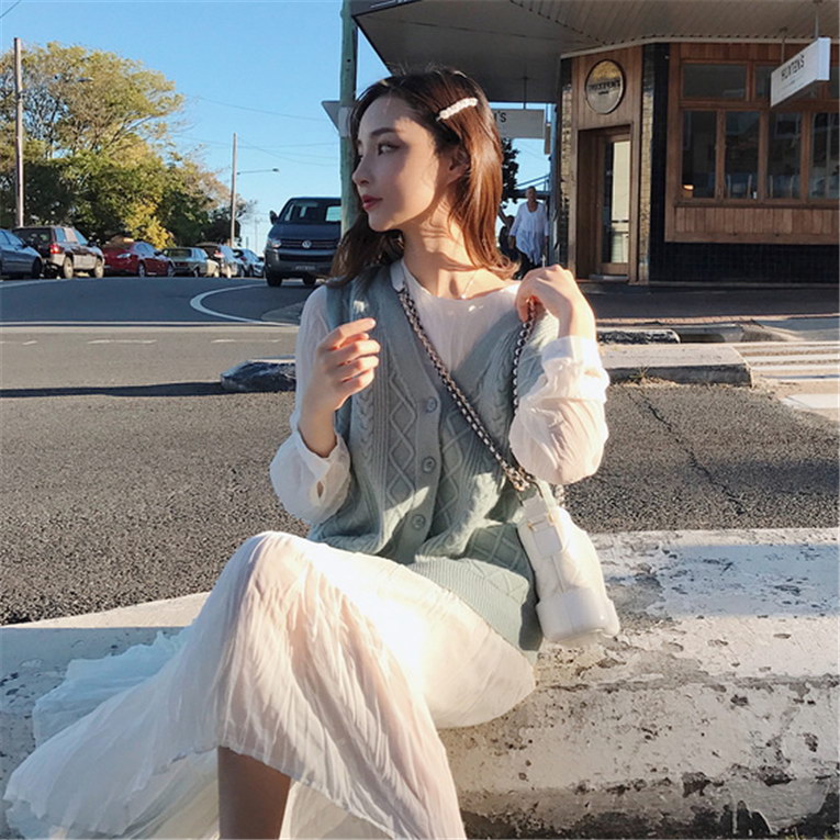 小清新少女无袖针织毛衣背心
